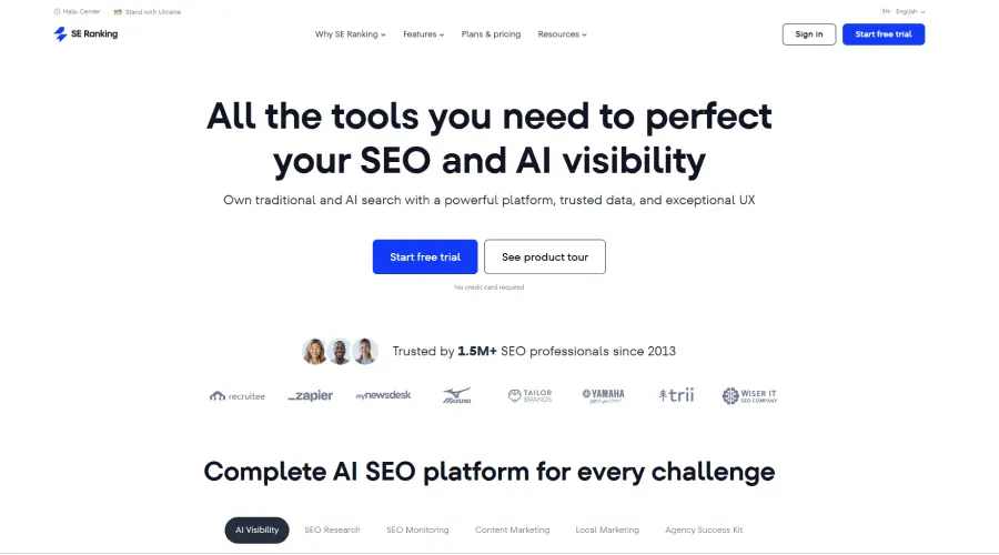 SE Ranking maintains extensive rank tracking tools while focusing on local search optimization. The software allows for unlimited keyword monitoring and tracking over more than 100,000 places globally.